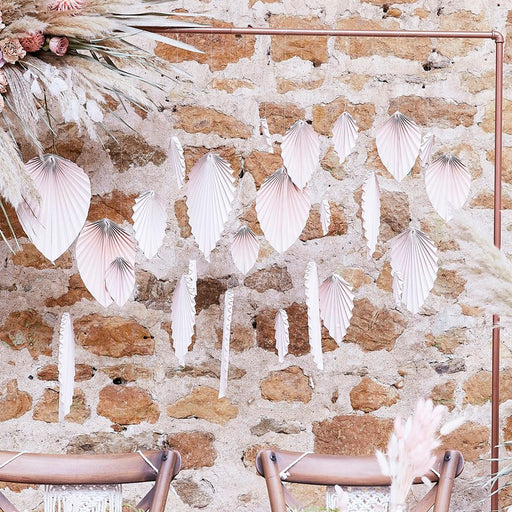 Pretty blush pink palm leaf fan decorations Create a stunning backdrop or focal point Pack of 25 Paper fan decorations each measuring between ...