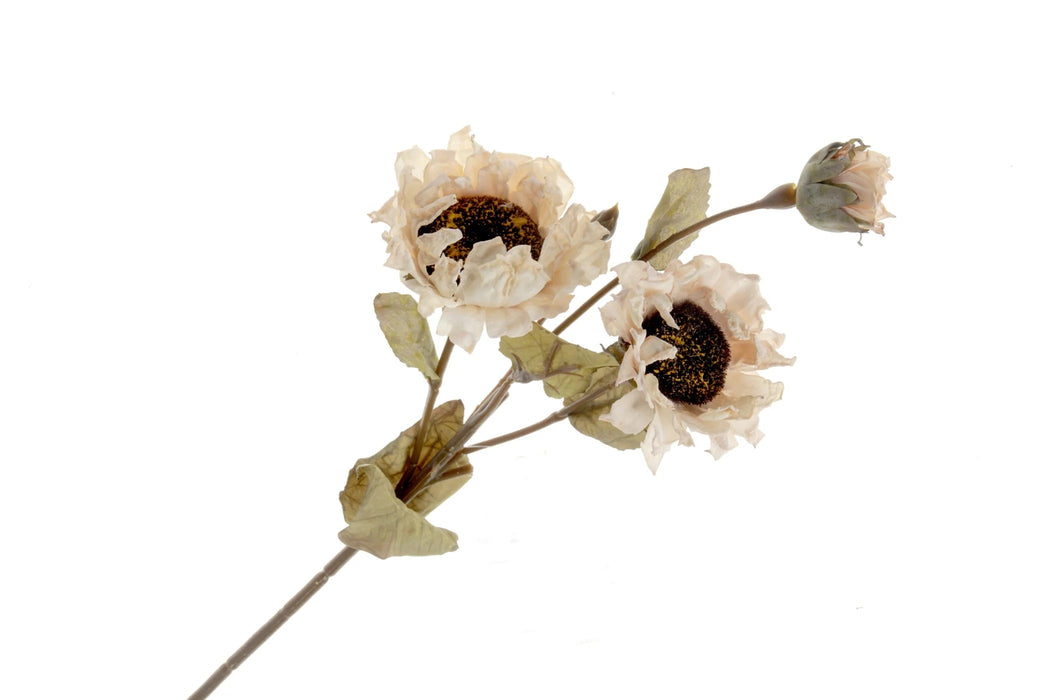 Dried- Style Artificial Sunflower Spray 51cm Long, 3 Heads - Cream