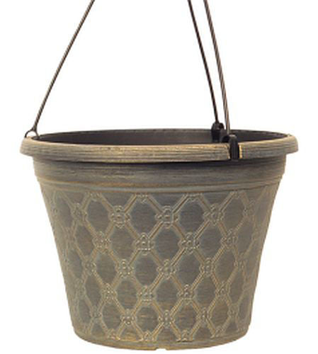 This 10" Knox plastic hanging basket enhances any outdoor living space with its stylish bronze patina effect