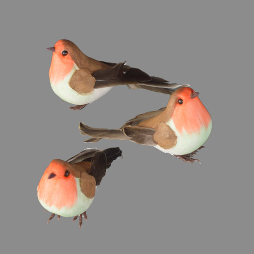 Set of 3 robins with feather wings & tail Seasonal addition to floral arrangements, wreaths, and table decoration Ideal for use in creative fe...