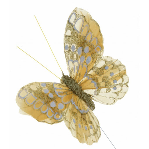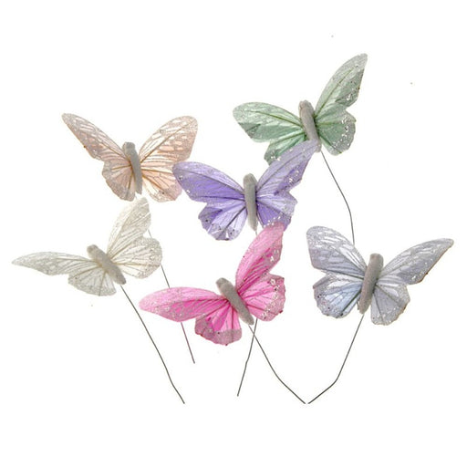 Glittered decorative butterflies on a 20cm wire Beautiful feather wings with markings A dash of glitter for extra sparkle Perfect addition to brid...