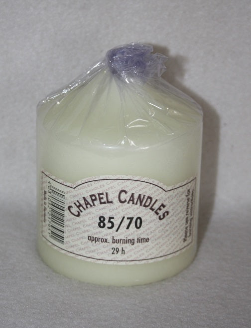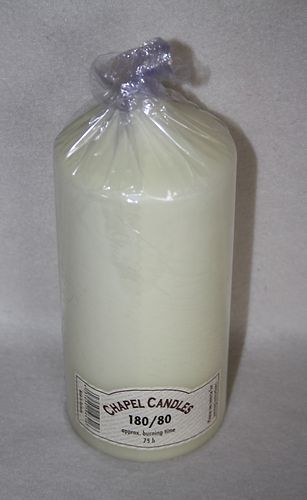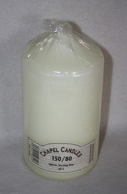 Traditional ivory chapel pillar candle Attractive addition to flower arrangements and displays 100% made in Germany Burns approx 84 hours Height...