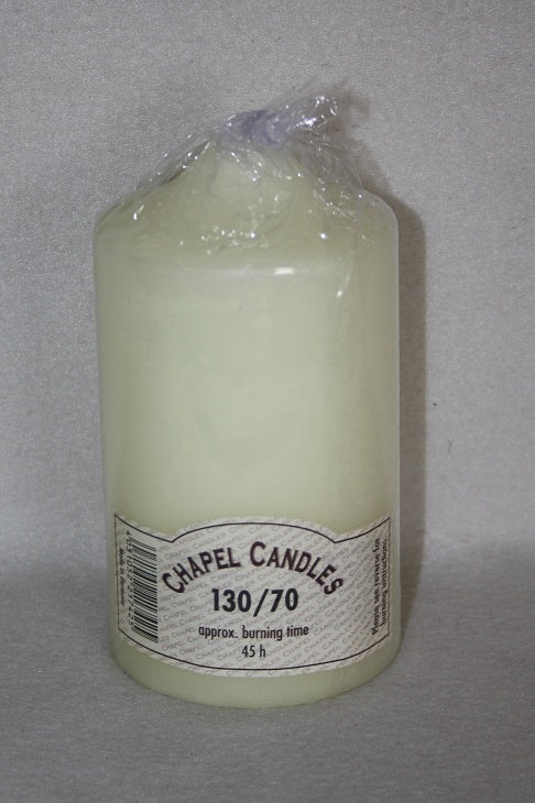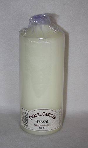 Traditional ivory chapel pillar candle Attractive addition to flower arrangements and displays 100% made in Germany Burns approx 63 hours Height...