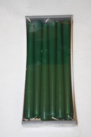 Box of 12 emerald tapered candles Good quality candles that burn evenly and reliably Wenzel candles - 100% made in Germany Approx 250 mm x 23 mm ...