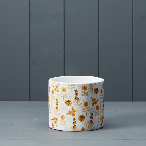 Charming flower print ceramic pot Pretty Boho flowers in warm shades of yellow and orange Lovely container for a small flower or plant Perfect V...