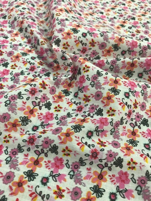 1m Pink Polycotton Floral Primrose Fabric x 112cm