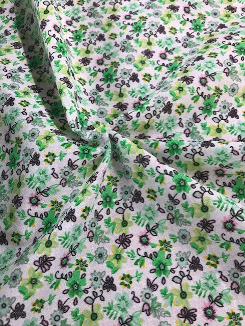 1m Green Polycotton Floral Primrose Fabric x 112cm