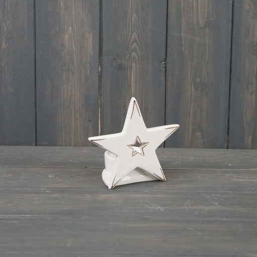 Stylish ceramic star tealight holder Attractive home and event seasonal decoration Adds a touch of magic to special occasion table settings Meas...