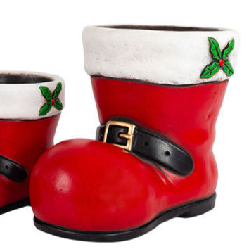 Festive red ceramic Santa bootFinished with a white fur trim and a sprig of hollyAttractive pot for a small Christmas gift plantCharming decorative...