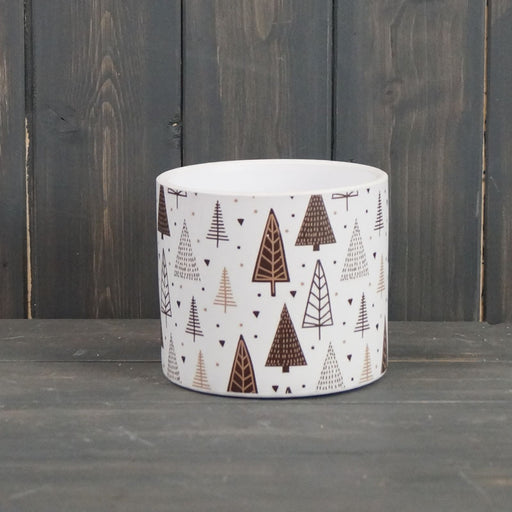 Add a playful touch to your Christmas décor with this modern pink tin pot with a fun festive tree patternPerfect for displaying seasonal plan...
