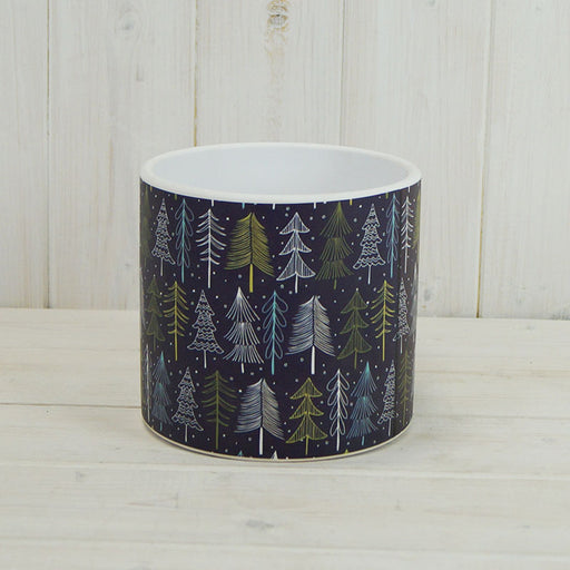 Christmas tree print ceramic pot Charming winter tree, snowflake and holly Festive container for a small flower or plant Perfect special occasi...