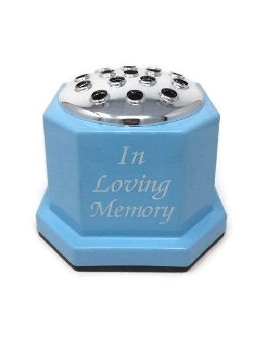 Durable plastic grave pot insert in a light blue Standard size that will fit most crematorium vases Height 10cm Base diameter 7cm Top diameter 1...