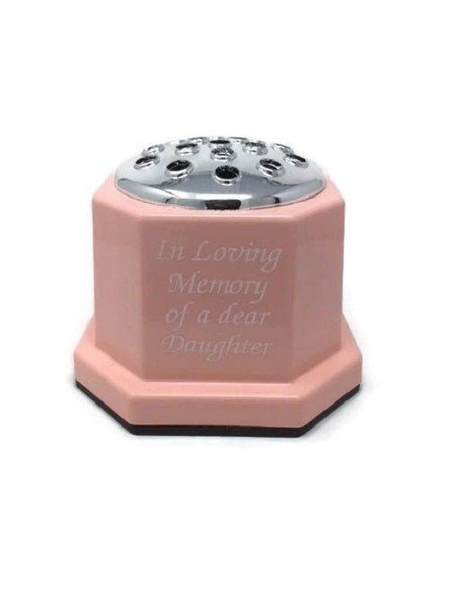 Durable plastic grave pot insert in a light pink Standard size that will fit most crematorium vases Height 10cm Base diameter 7cm Top diameter 13...