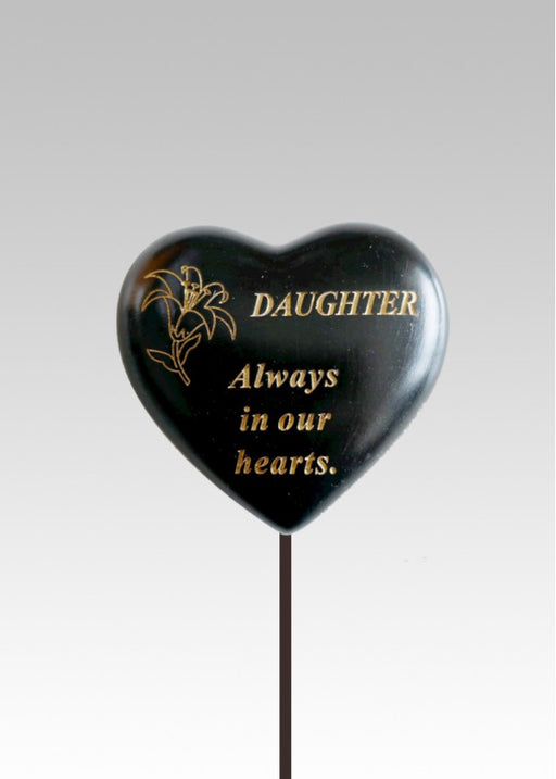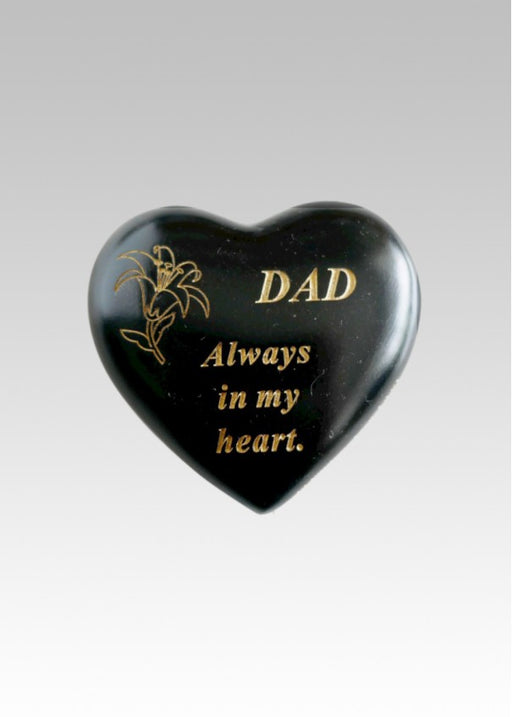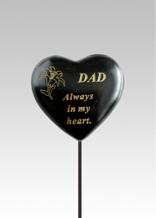Black & Gold heart graveside stone Etched gold Lily flower with text 'Dad always in my heart ' Durable and weatherproof resin heart Heart m...