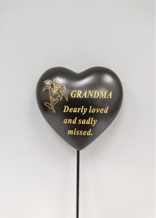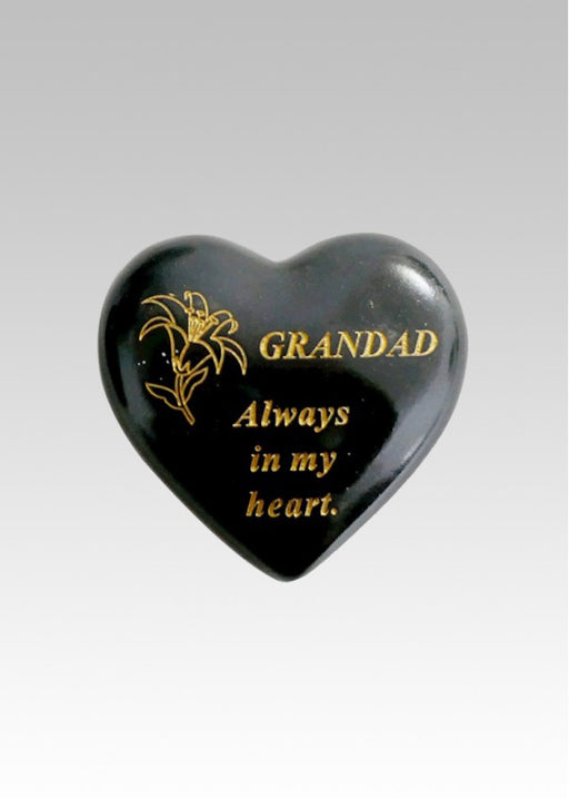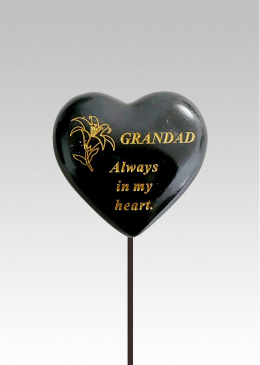 Black & Gold heart graveside stone Etched gold Lily flower with text 'Grandad always in my heart ' Durable and weatherproof resin heart Hea...