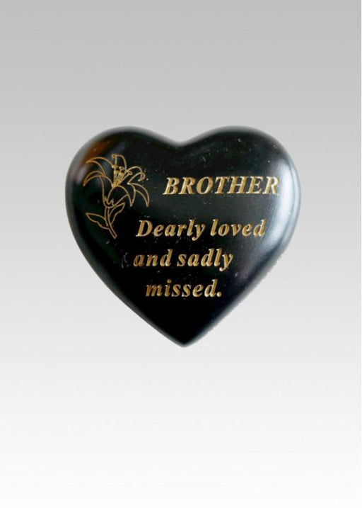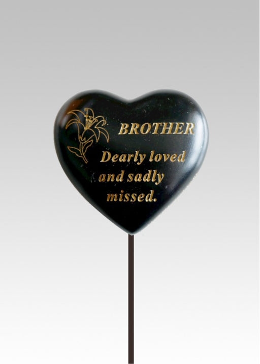 Black & Gold heart graveside stone Etched gold Lily flower with text Durable and weatherproof resin heart Heart measures approx 8 x 8cm