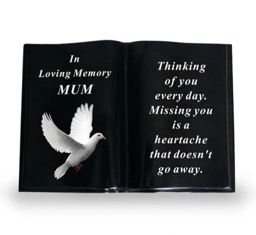 Black memorial book with a white dove  'In Loving Memory MUM Thinking of you every day Missing you is a heartache that doesn't go away' Perfec...