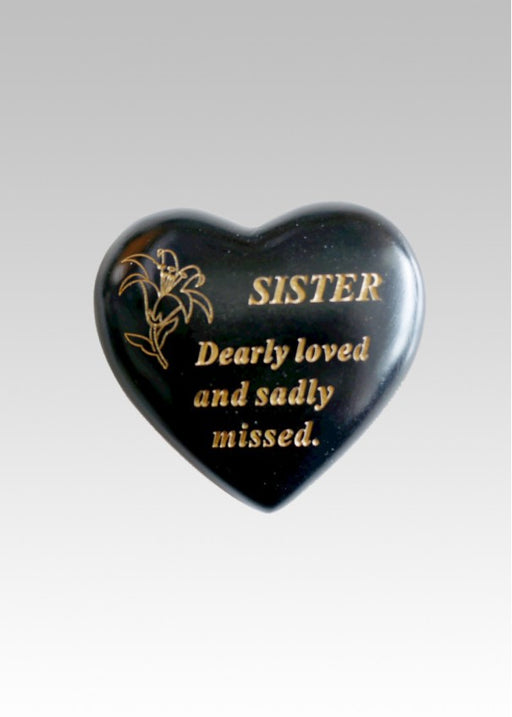 Black & Gold heart graveside stone Etched gold Lily flower with text 'Mum dearly loved and sadly missed ' Durable and weatherproof resin heart...