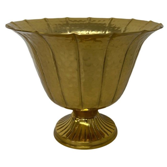 Ribbed Footed Metal Urn x 24.5cm - Gold