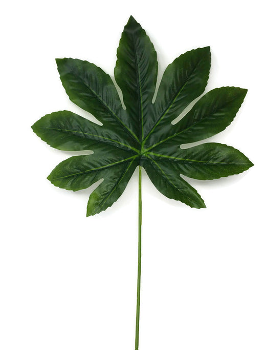 Large artificial fatsia leaf stem Nicely shaped glossy green leaf Add a tropical touch to floral designs Works well in artificial or fresh arrange...