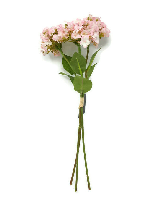 Artificial petite hydrangea blossom flower posy Finished with a small raffia tie 3 individually wired stems Height 32cm Flower head diameter 7cm Si...