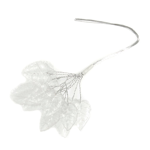 Dainty clear transparent leaves on silver wire Ideal for wedding decor Pretty addition to corsages, tiaras, and floral hairpieces Lovely add...