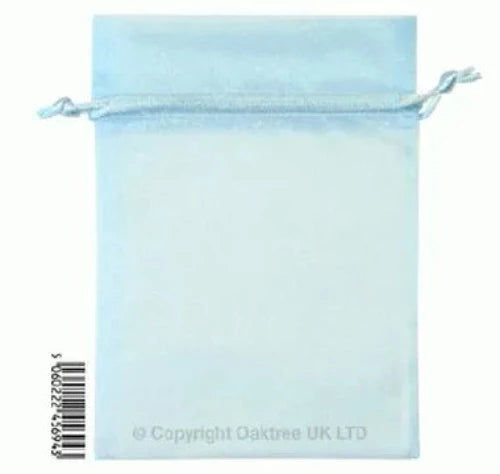 This pack of 10 light blue organza bags is perfect for stylish wedding favors, small personal gifts, and decorative jewellery presentation