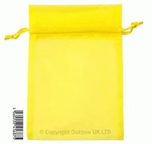 This pack of 10 yellow organza bags is perfect for stylish wedding favors, small personal gifts, and decorative jewellery presentation