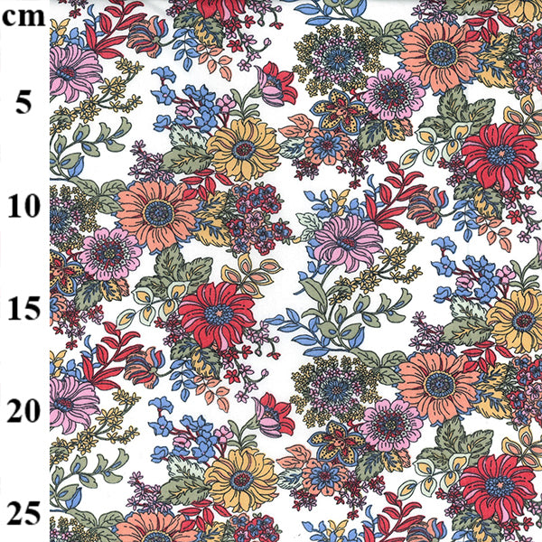 1 Metre 100% Cotton Poplin Colourful Blooms on Ivory Background Fabric Width: 110cm (44 inches)