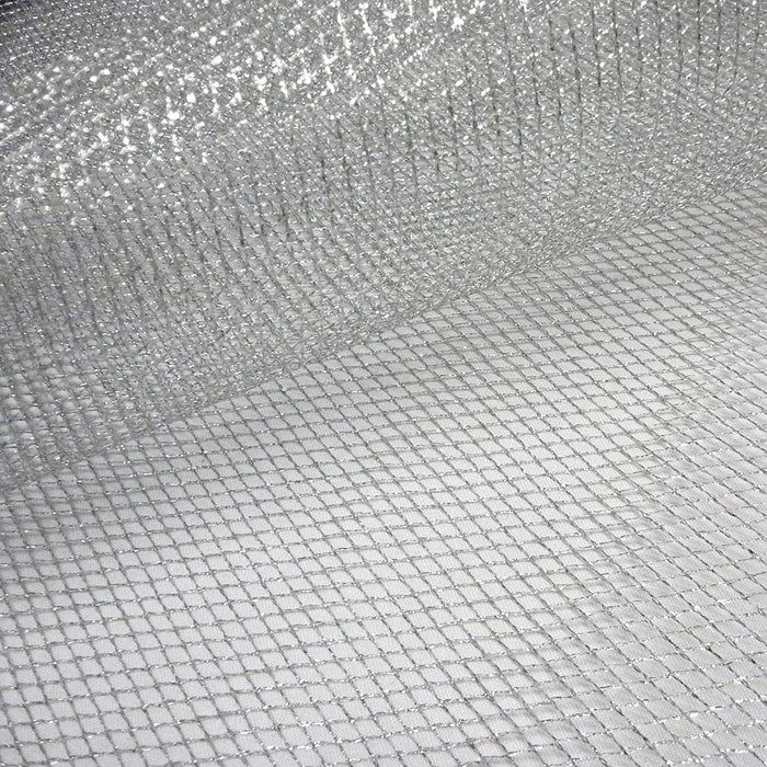 1 metre Metallic Glitter Flare Free Dress Net Fabric x 132cm - Silver
