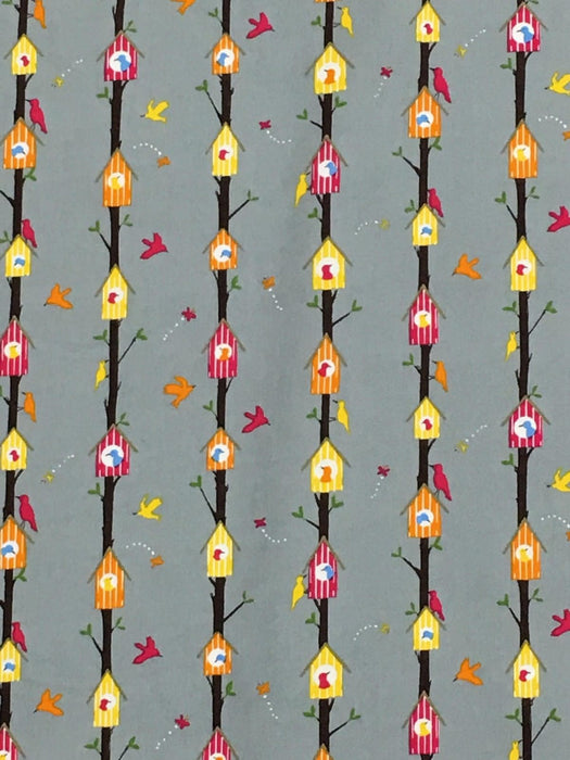 100% Cotton Modern Grey Birdhouse Fabric x 45" T102