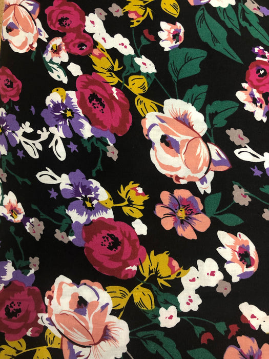 100% Cotton Poplin Fabric x 110cm - Pink Cerise Purple Dress Flowers