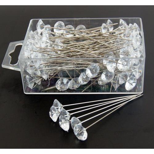 100 x 2.5" 6mm Clear Acrylic Diamante Pins