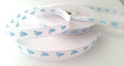 10mmx20m grosgrain blue footprint ribbon baby feet
