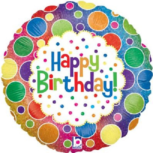18" Foil Balloon - Happy Birthday Rainbow Dots