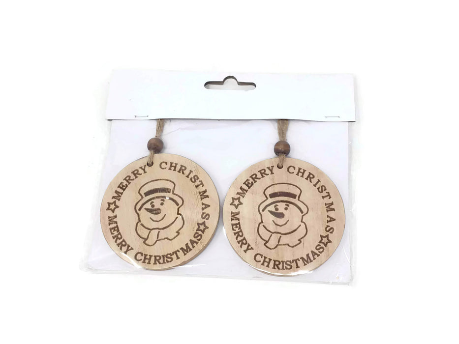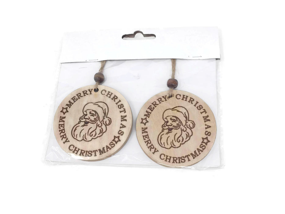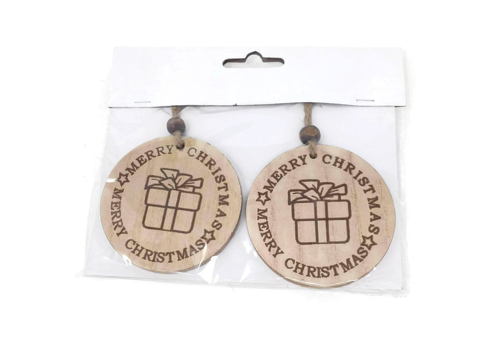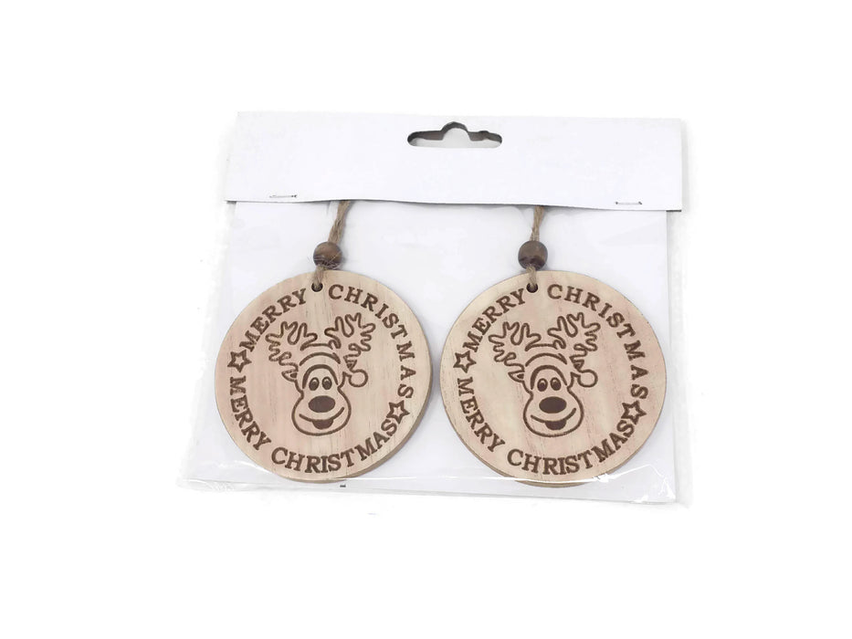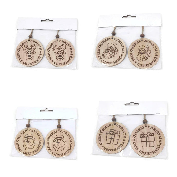 2 x Scandi Wooden Christmas Tree Hangers - Choice of Rudolph, Gift Box, Snowman or Santa
