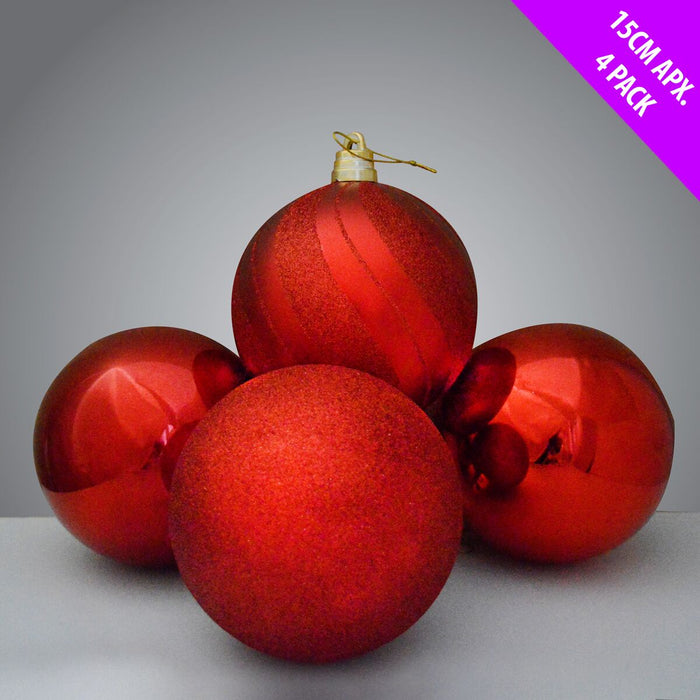4 Giant Glittered And Shiny Baubles x 15cm - Red