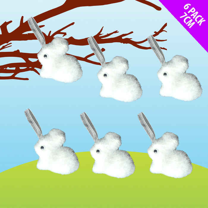 Pack of 6 fluffy white Easter bunnies.