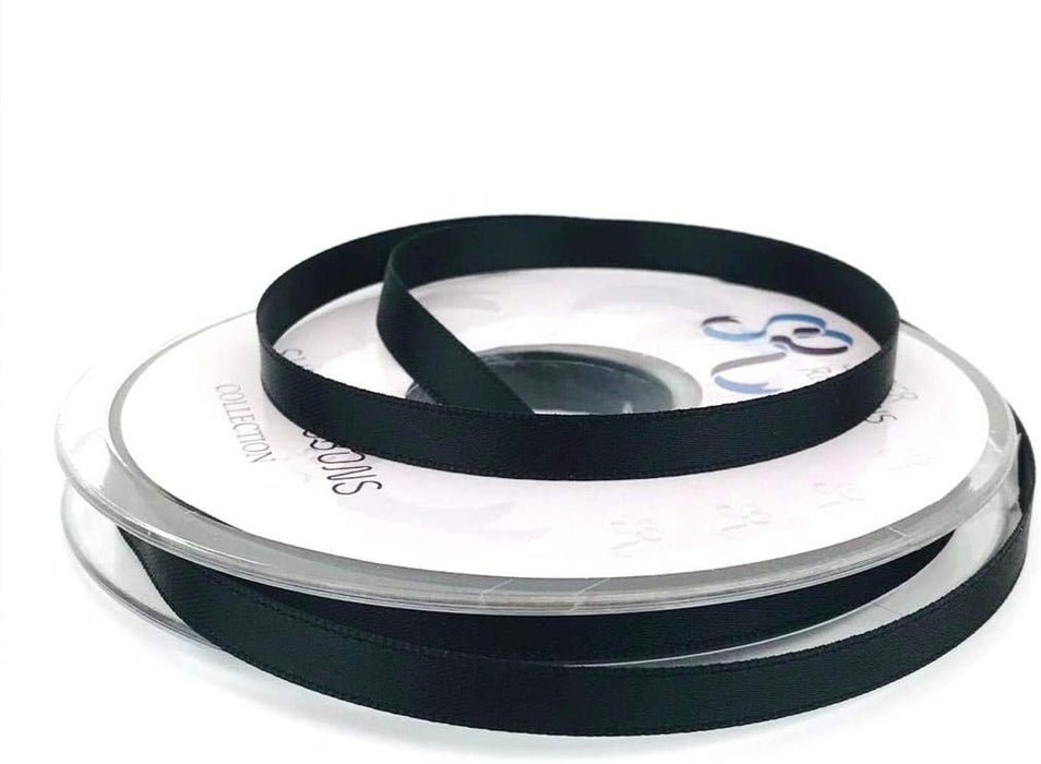 6mm x 20m Double Faced Black Satin Ribbon