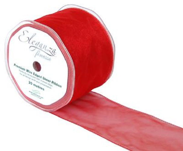 70mm x 20m Wired Chiffon Organza Ribbon - Red