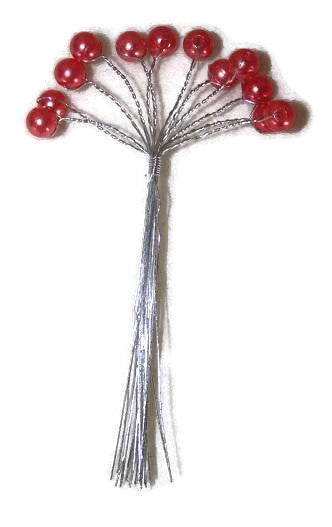 10mm Cream Pearls on Wire Stem - 10cm Height 3 bunches x 12 Stems per Bag