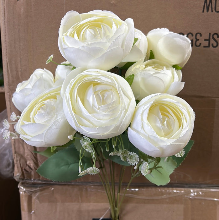 10 Head 6cm diameter Rose Bunch x 30cm - ivory