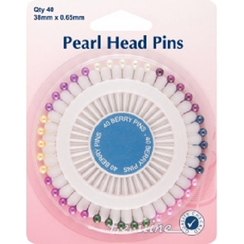 Assorted Colour Pearl Heads Pins: Nickel - 38mm, 40pcs