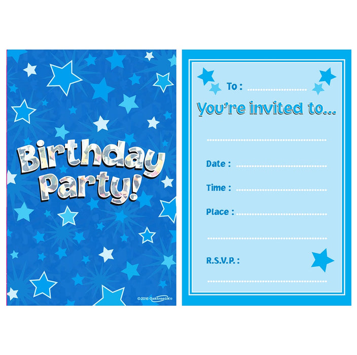 Blue Birthday Holographic Invitations/envelopes 8pcs