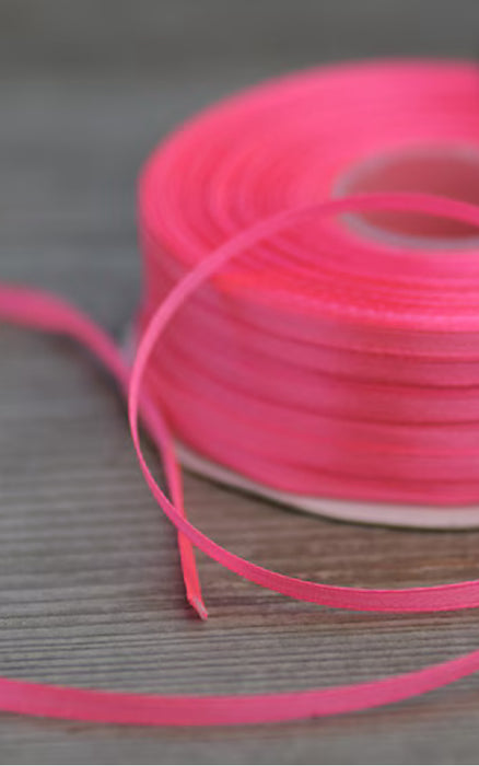 3mm x 50m Double Faced Satin Ribbon Roll , Shocking Pink