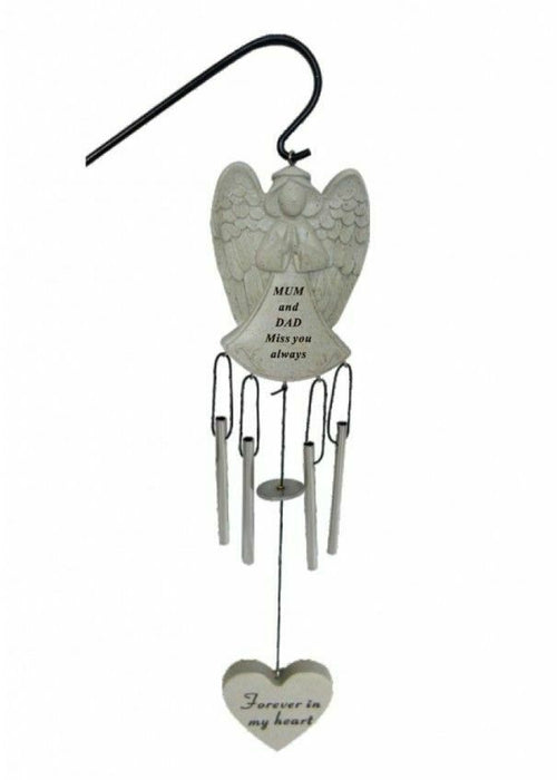 Praying Angel Windchime with Hanging Crook - Mum & Dad