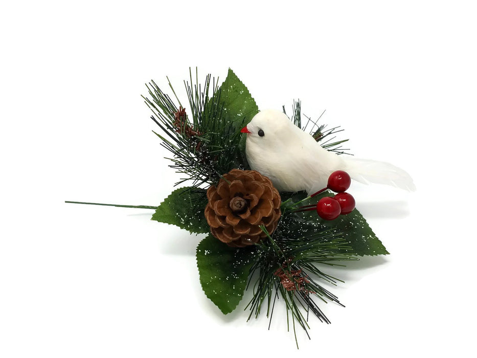 White Bird & Pine Snowy Pick x 18cm