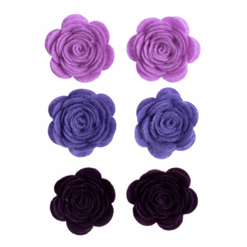 Pack of 6 Stick on Open Roses - Shades of Purple approx 2cm