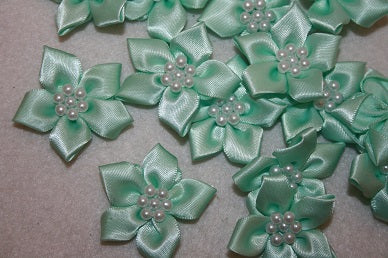 satin ribbon flower & pearl x20pcs