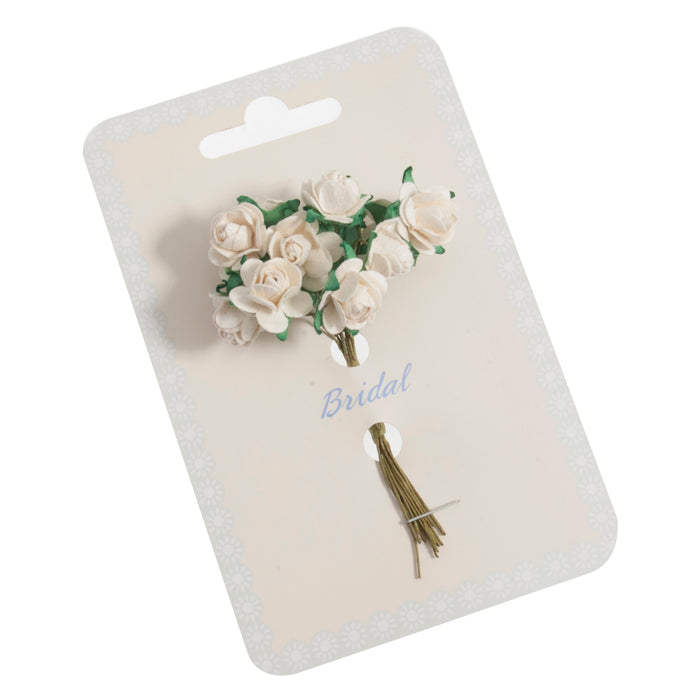 Home Paper Rose -14mm Heads - 12 Stems - White